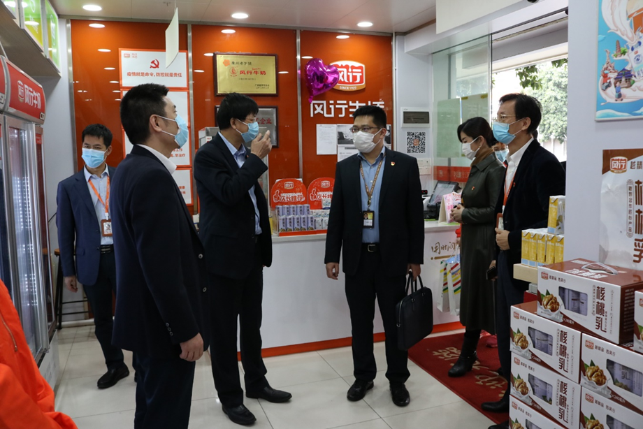 3月5日下午,由集团党委副书记、副董事长、总经理叶珊瑚,集团副总经理、风行集团党委书记、董事长林辉新,集团副总经理、风行集团党委副书记、副董事长、总经理韦黎明带队的党员领导干部突击队前往风行乳业检查疫情防控及复工复产情况,送来企业急需的口罩等防疫用品,并看望慰问一线员工。
